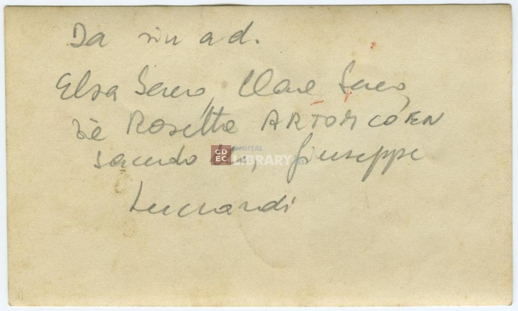 osservazioni | Da sinistra Elsa Sereno in Luccardi, Clara Sereno in Biocca (che sarĂ arrestata a Roma e deportata ad Auschwitz nel 1943), Rosetta Artom in Coen Sacerdotti e Giuseppe Luccardi |