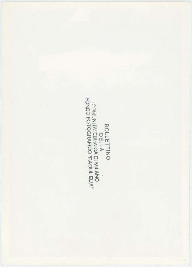 | timbri, marchi | sul verso del supporto il timbro a inchiostro "Bollettino della Comunità ebraica di Milano/ Fondo Fotografico "Raoul Elia" |