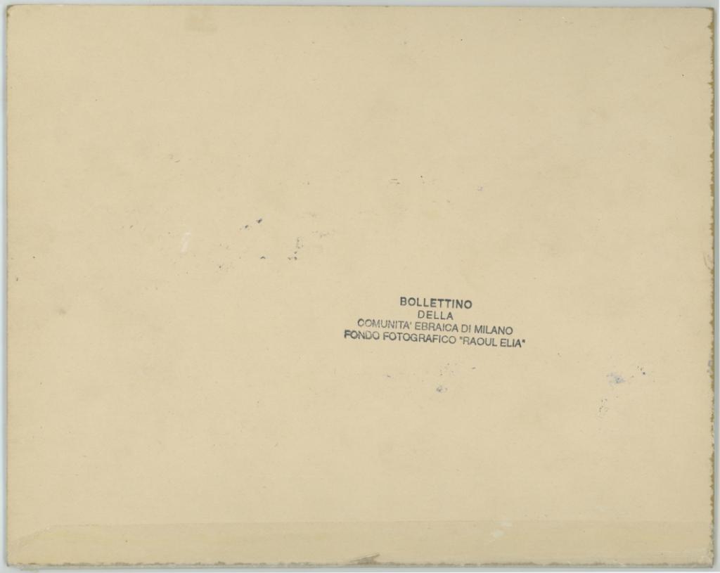 | timbri, marchi | sul verso del supporto secondario il timbro a inchiostro "Bollettino della Comunità ebraica di Milano/ Fondo Fotografico "Raoul Elia" |