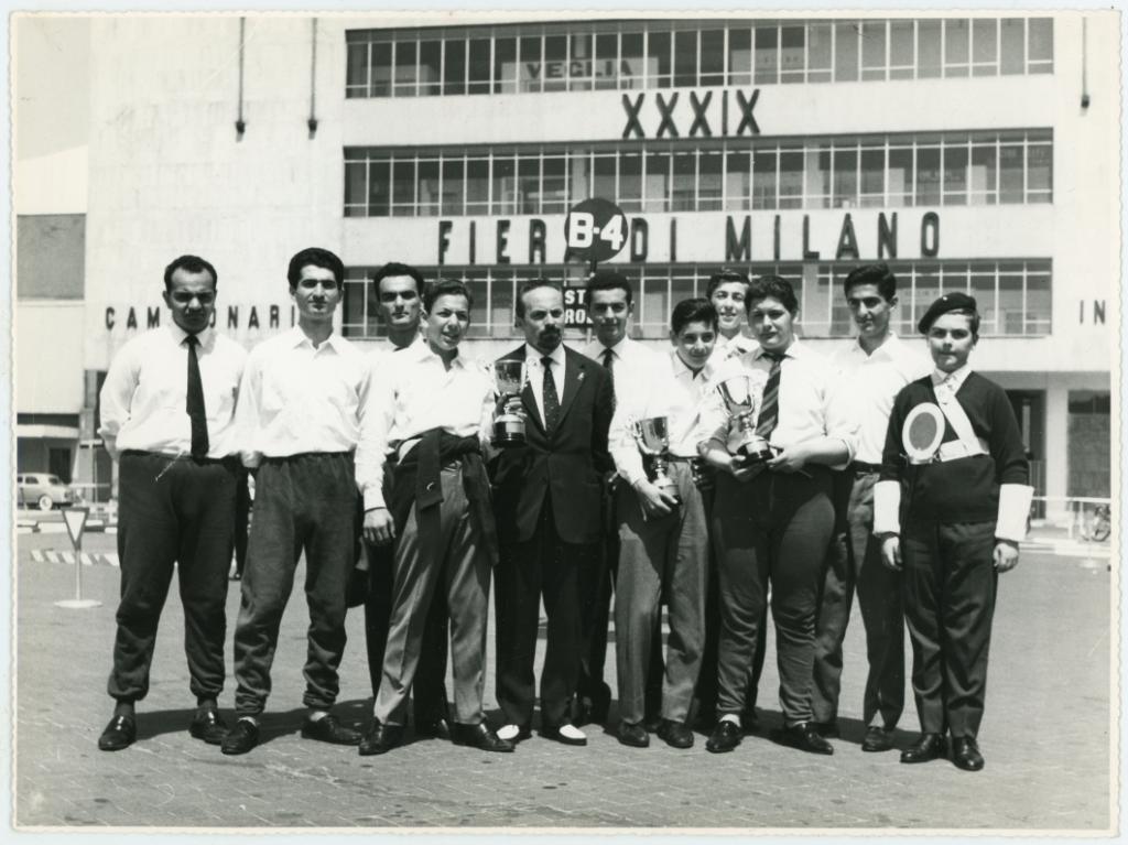 | titolo attribuito | Ritratto delle squadre vincitrici del terzo Concorso di Educazione stradale ACI-Shell svoltosi alla Fiera di Milano in Piazza Giulio Cesare |