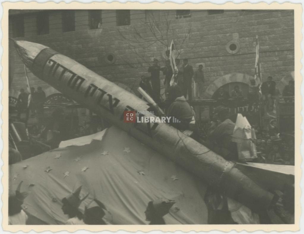 titolo attribuito | Veduta di un carro allegorico alla parata in occasione della festa di Purim a Gerusalemme |