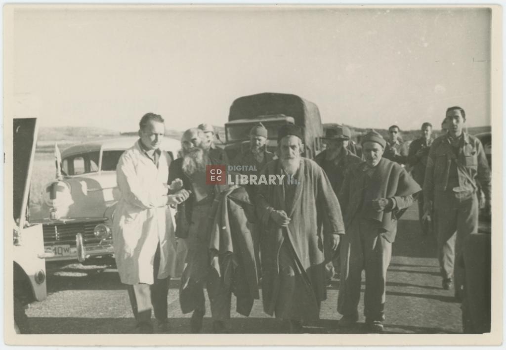 iscrizioni | sul verso del supporto iscrizione manoscritta a matita in lingua ebraica "Il dottor Sternberg, rappresentante della Croce Rossa degli ebrei, presta soccorso ai prigionieri della Città Vecchia al tempo della loro liberazione" e indicazioni tipografiche |