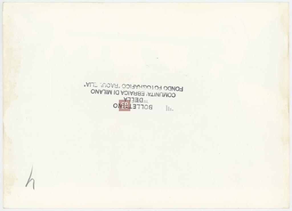 timbri, marchi | sul verso del supporto il timbro a inchiostro "Bollettino della Comunità ebraica di Milano/ Fondo Fotografico Raoul Elia" |