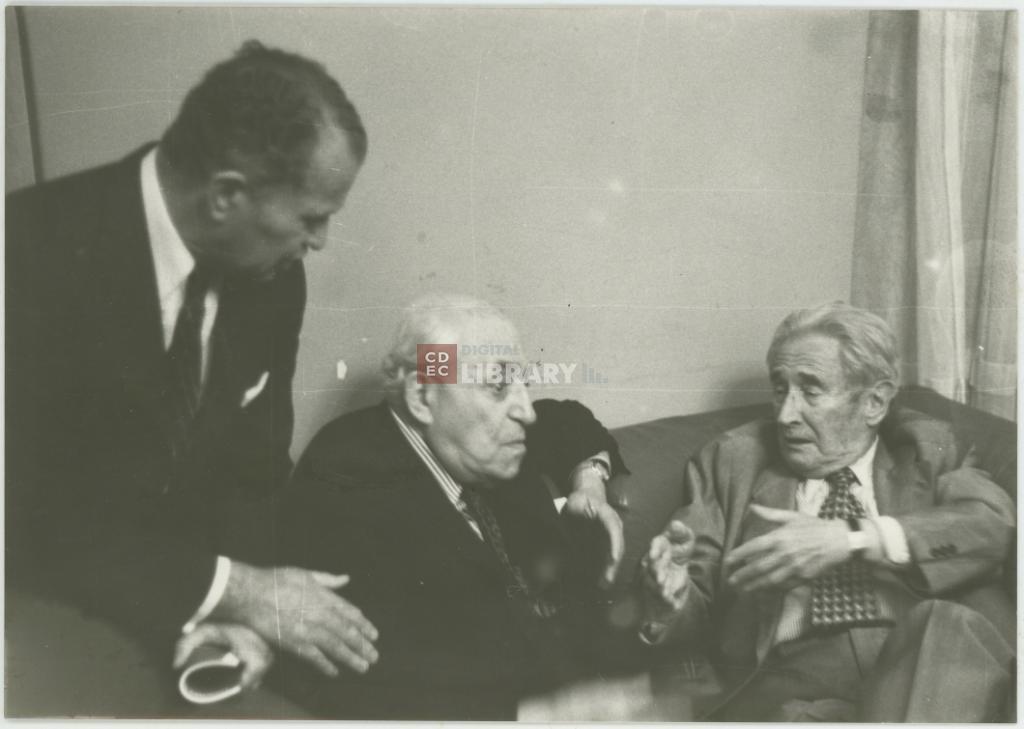 titolo attribuito | Ritratto di tre uomini durante l'incontro della Sezione europea del Congresso Mondiale ebraico a Milano |