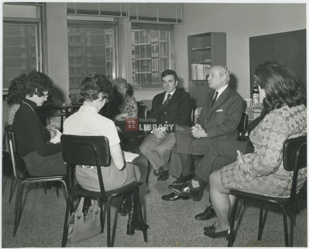 titolo attribuito | Ritratto di uomini e donne non identificati durante una riunione presso la Casa di riposo della Comunità ebraica di Milano |