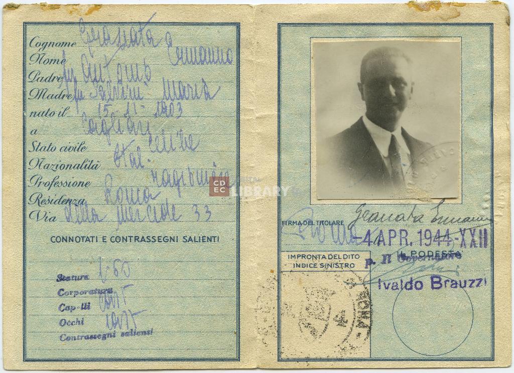 | osservazioni | L'autore e il luogo dello scatto sono desunti dal confronto con un altro esemplare presente in archivio (inv. 196-520). Il documento forse riporta le false generalità di una persona non ancora individuata. |