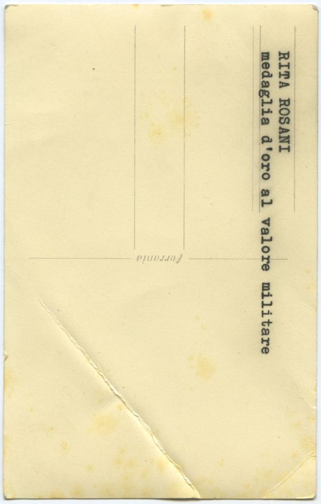 | iscrizioni | sul verso del supporto la didascalia dattiloscritta "Rita Rosani/ medaglia d'oro al valor militare" |