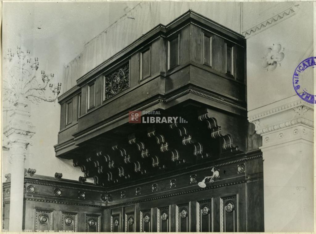 | titolo attribuito | Veduta della cantoria in legno scolpito e dipinto nel Tempio di via Guastalla a Milano prima del bombardamento |