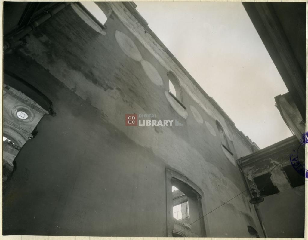 | notizie storico-critiche | Lo scatto riprende la sinagoga di via Guastalla dopo il bombardamento aereo avvenuto nell'agosto 1943 e che distrusse l'intero edificio ad eccezione della facciata. Il tempio era stato progettato dall'architetto Luca Beltrami. |