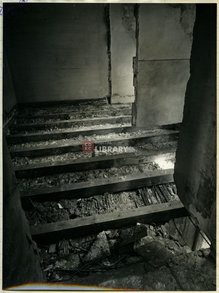 | osservazioni | La stampa fotografica è l'Allegato n. 47 inserito nel 4° fascicolo della "Relazione di perizia sulla consistenza dello stabile di via Guastalla 19 a Milano, di proprietà della Comunità israelitica di Milano, già sede del Tempio israelitico", che riunisce le fotografie eseguite nel marzo 1948, dopo il sinistro. La fotografia è accompagnata dalla seguente didascalia dattiloscritta: "Solaio del corpo secondario di sinistra" |