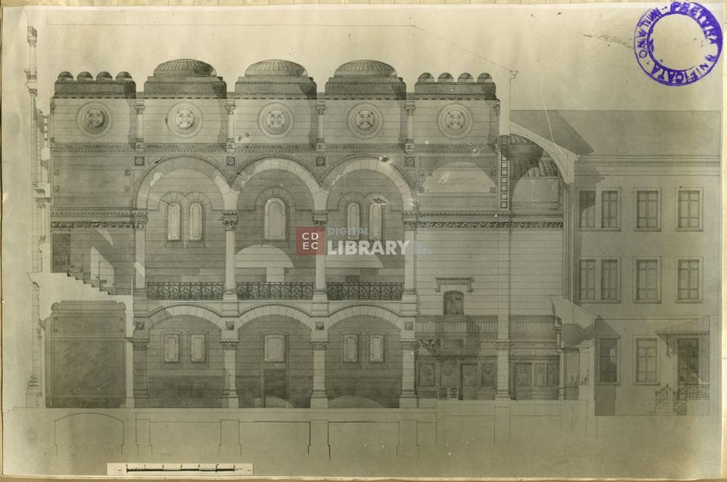 | osservazioni | La stampa fotografica è l'Allegato n. 3 inserito nel 2° fascicolo della "Relazione di perizia sulla consistenza dello stabile di via Guastalla 19 a Milano, di proprietà della Comunità israelitica di Milano, già sede del Tempio israelitico", che riunisce le riproduzioni fotografiche ed eliografiche di disegni originali di progetto dell'Arch. Luca Beltrami. La fotografia è accompagnata dalla seguente didascalia dattiloscritta: "Sezione longitudinale". |