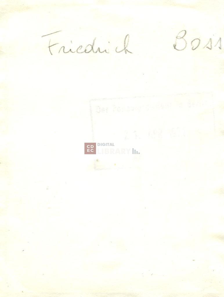 iscrizioni | sul verso dei supporti il timbro rettangolare a inchiostro con la scritta "Das Polizei[...] in Berlin/ 21 APR. 1971/ [...]" |