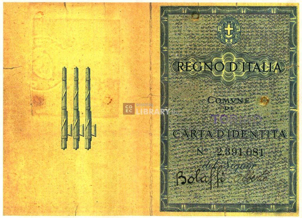 titolo attribuito | Carta d'identità di Bolaffi Alberto |