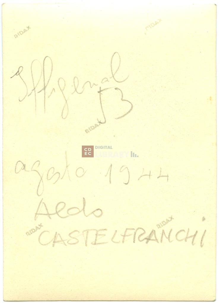 | iscrizioni | sul verso del supporto la didascalia manoscritta a matita "Iffigenal [sic] agosto 1944/ Aldo Castelfranchi" |