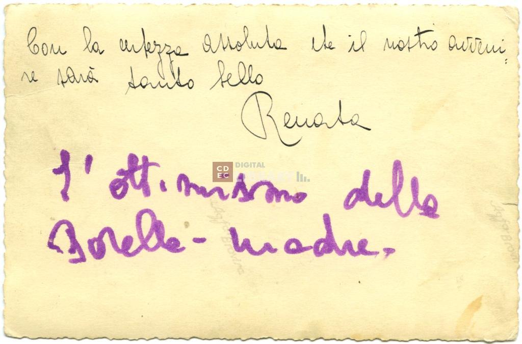 osservazioni | La scritta a pennarello è della sorella di Renata, Giuliana Fiorentini in Castelli, che era minore di 14 anni e da qui la definizione di "sorella-madre" |