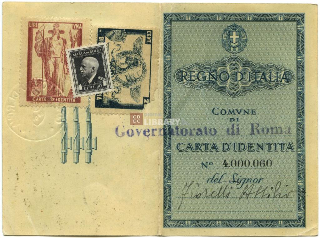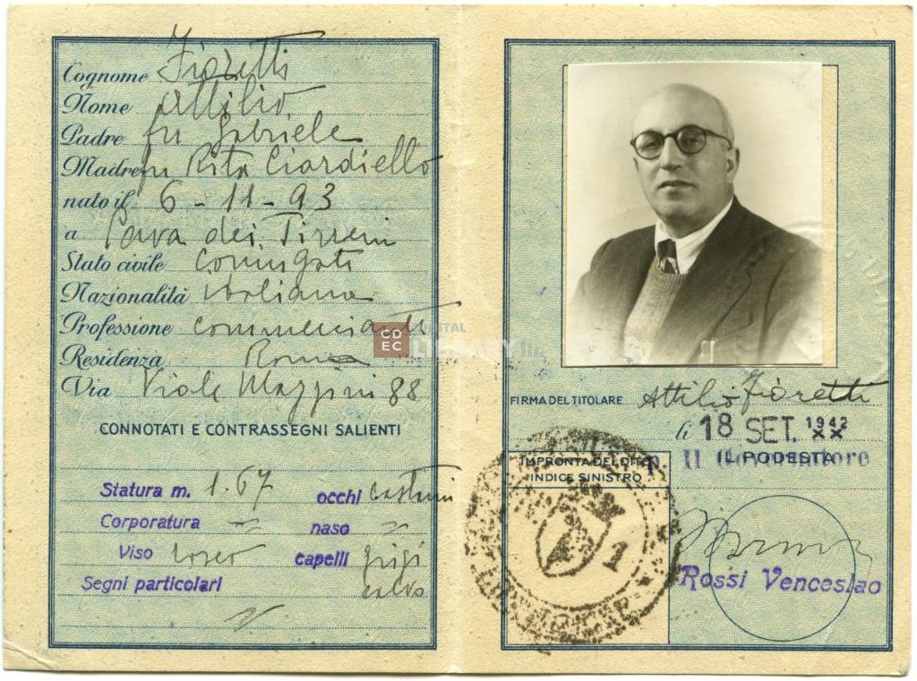 titolo attribuito | Carta d'identità di Attilio Fiorentini (alias Attilio Fioretti) |