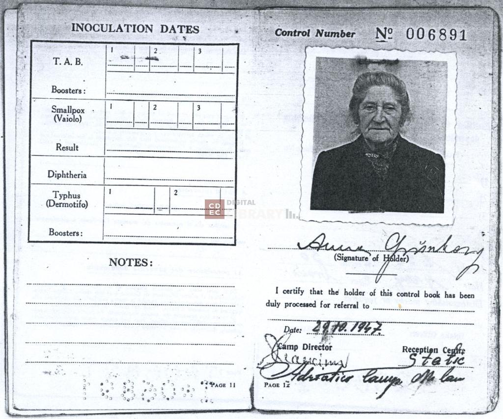 titolo attribuito | Control Book for displaced persons and refugees di Grinberg Anna |