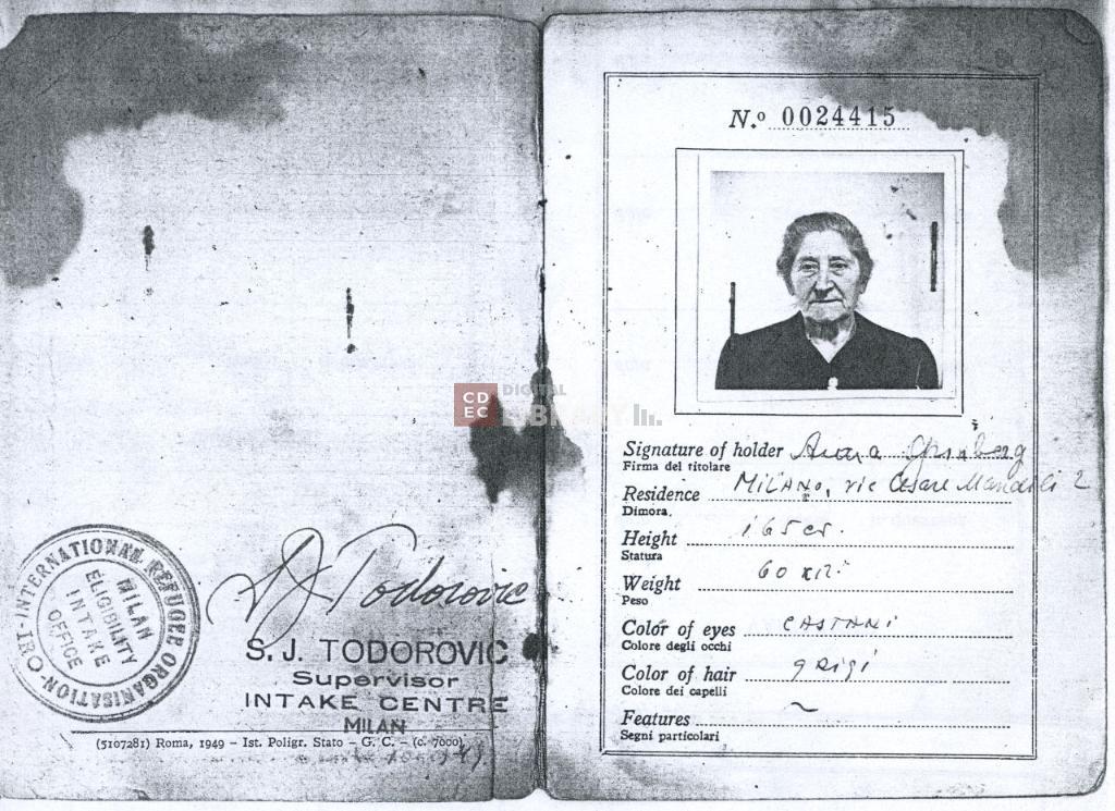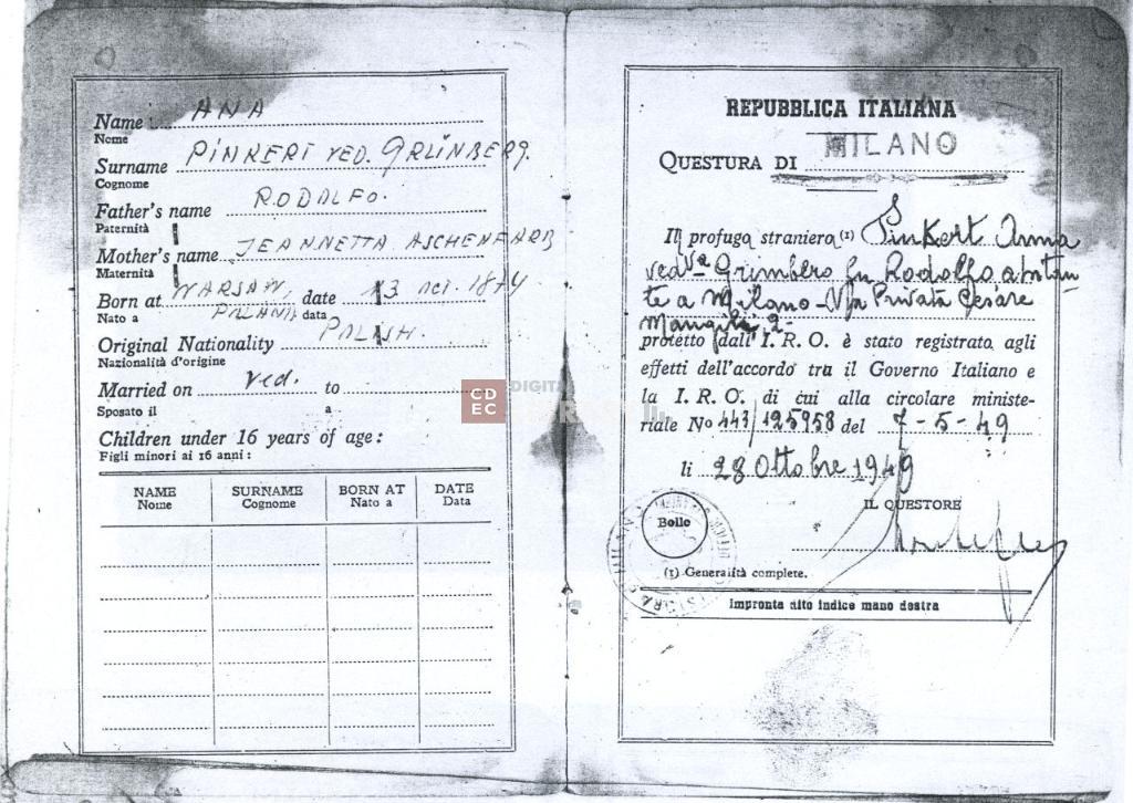 titolo attribuito | Documento di identificazione per profugo straniero di Grinberg Anna |
