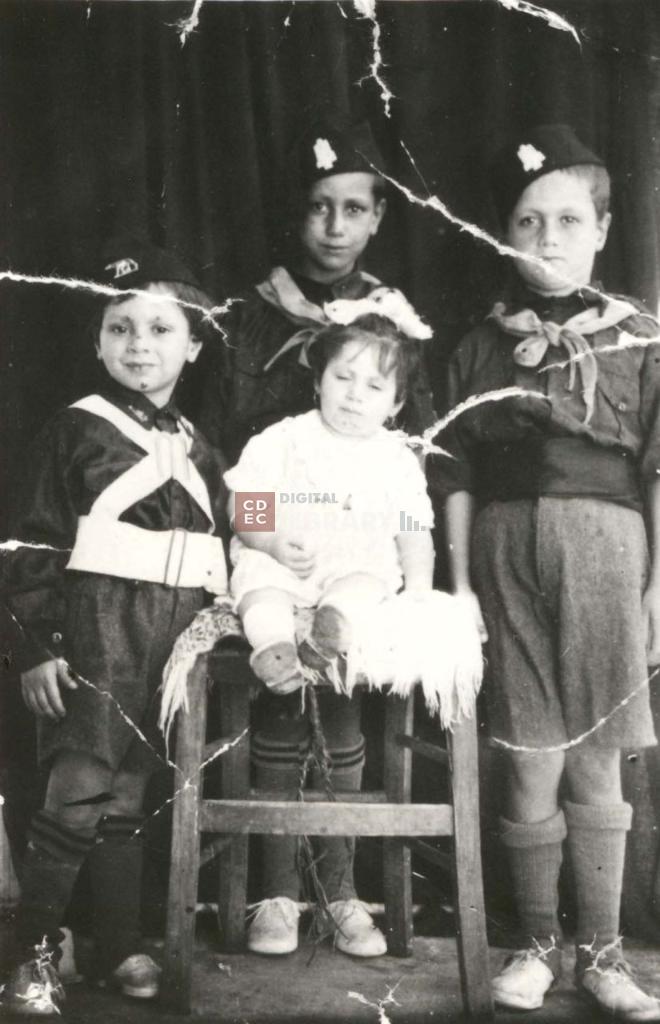osservazioni | Nella fotografia si riconoscono in piedi da sinistra Isacco Baruch, Eliezer Baruch e Giacomo Baruch; la bambina seduta al centro รจ Zimbul Baruch |