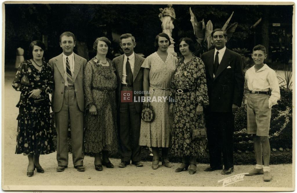 osservazioni | Nella fotografia si riconoscono da sinistra, come riportato nel foglio allegato alla fotografia: il secondo è Ferdinand Hahn, la terza è Ana Kohn in Hahn, il quarto è Enrico Kohn (fratello di Ana, morto in deportazione), la quinta è Zora Spiegler in Kohn, sua moglie; il ragazzo all'estrema destra è Paolo Hahn |