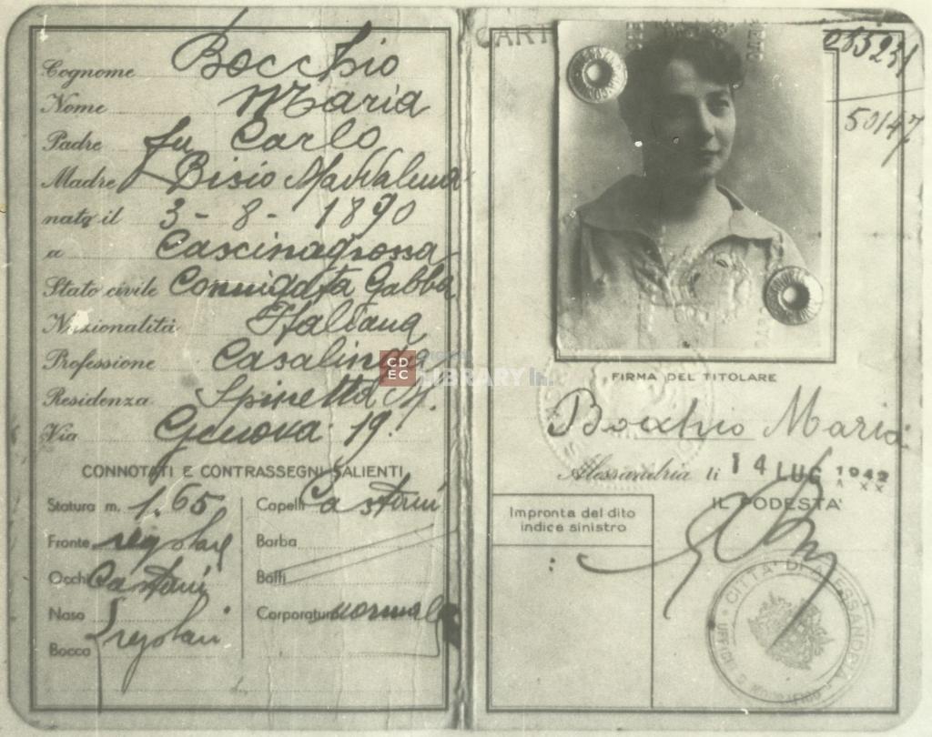 | titolo attribuito | Carta d'identità con false generalità di Claudia Hirsch (alias Maria Bocchio) |
