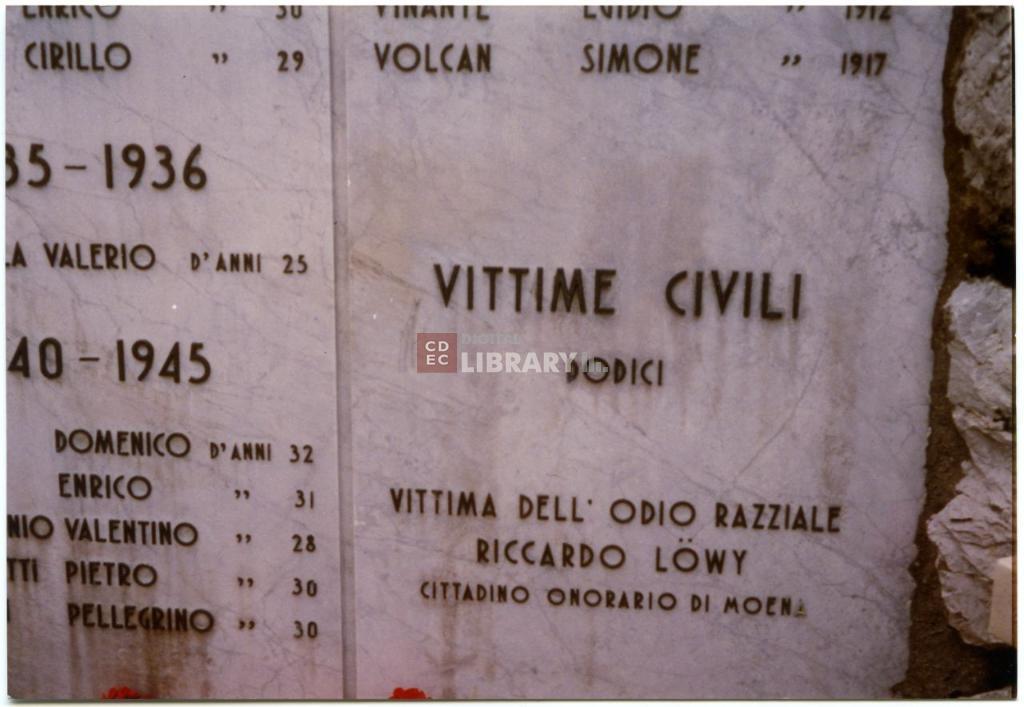 | notizie storico-critiche | La lapide dedicata ai caduti di guerra di Moena riporta anche il nome di Riccardo Löwy (Loewy), "vittima dell'odio razziale" e "cittadino onorario di Moena" |