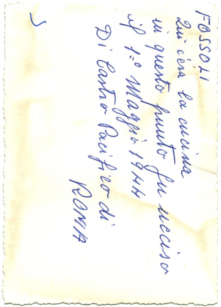 | iscrizioni | sul verso del supporto l'indicazione manoscritta da Frida Misul "Fossoli/ Qui c'era la cucina/ in questo punto fu ucciso il 1° Maggio 1944 Di Castro Pacifico di Roma" |