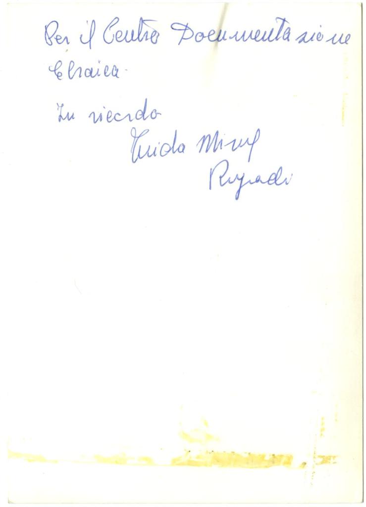 | iscrizioni | sul verso del supporto la dedica manoscritta "Per il Centro Documentazione Ebraica/ In ricordo Frida Misul Rugiadi" |