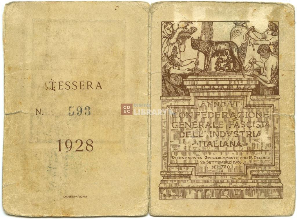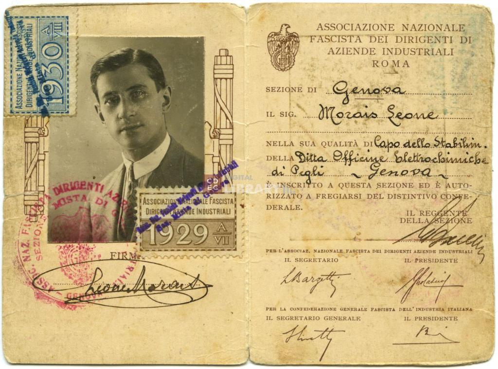 titolo attribuito | Tessera di riconoscimento dell'Associazione nazionale dei dirigenti di aziende industriali di Morais Leone |