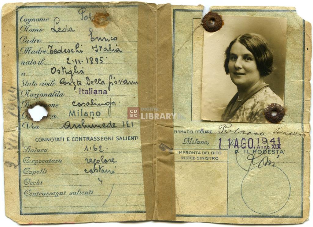 titolo attribuito | Carta d'identità di Leda Polacco in Della Giovanna |
