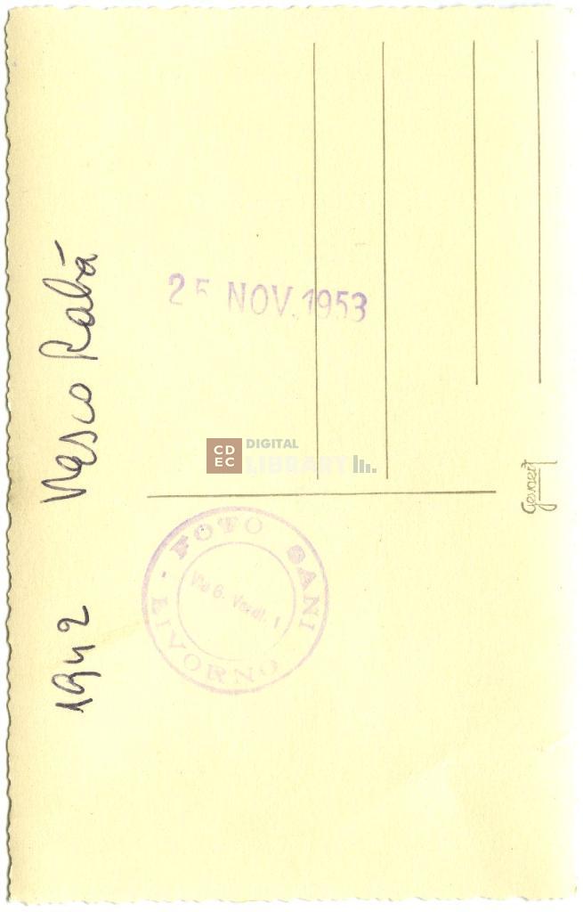 timbri, marchi | sul verso del supporto il timbro a inchiostro blu con il marchio commerciale del fotografo e la data "25 nov. 1953" |