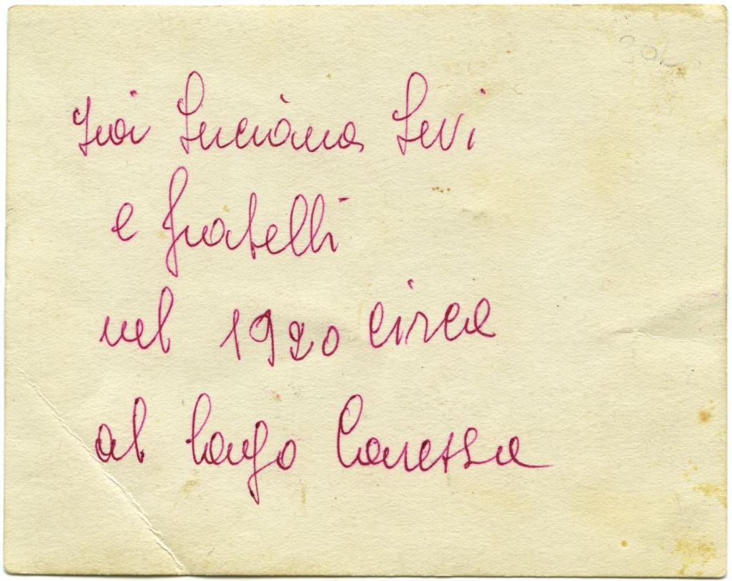 | osservazioni | Da sinistra Luciana Levi, Renzo Levi, bambino non identificato, Ettore Levi |