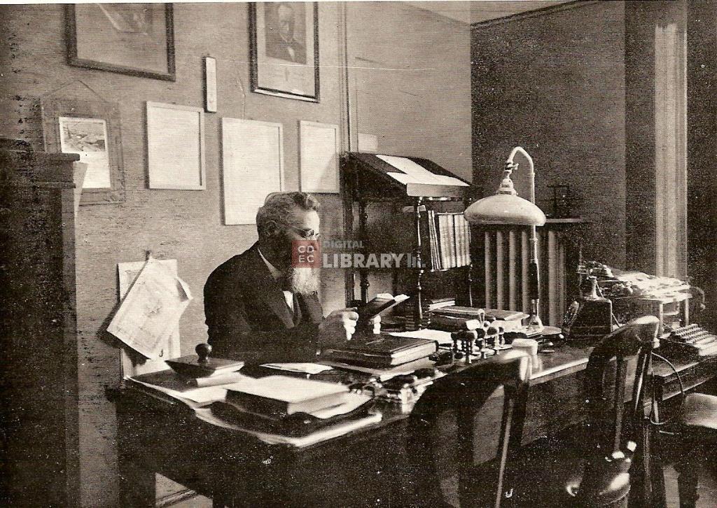 notizie storico-critiche | La fotografia fu pubblicata nel 1930 nell'opuscolo a stampa "La nuova sede dell'Istituto israelitico di Milano. Asilo infantile e Scuola elementare (Arco della Pace)" come Figura 9, accompagnata dalla seguente didascalia: "Direzione". Ritrae il rabbino prof. Emilio Schreiber, che nel 1929 fu chiamato a dirigere la scuola ebraica di Milano trasferitasi da via Disciplini a via Eupili |