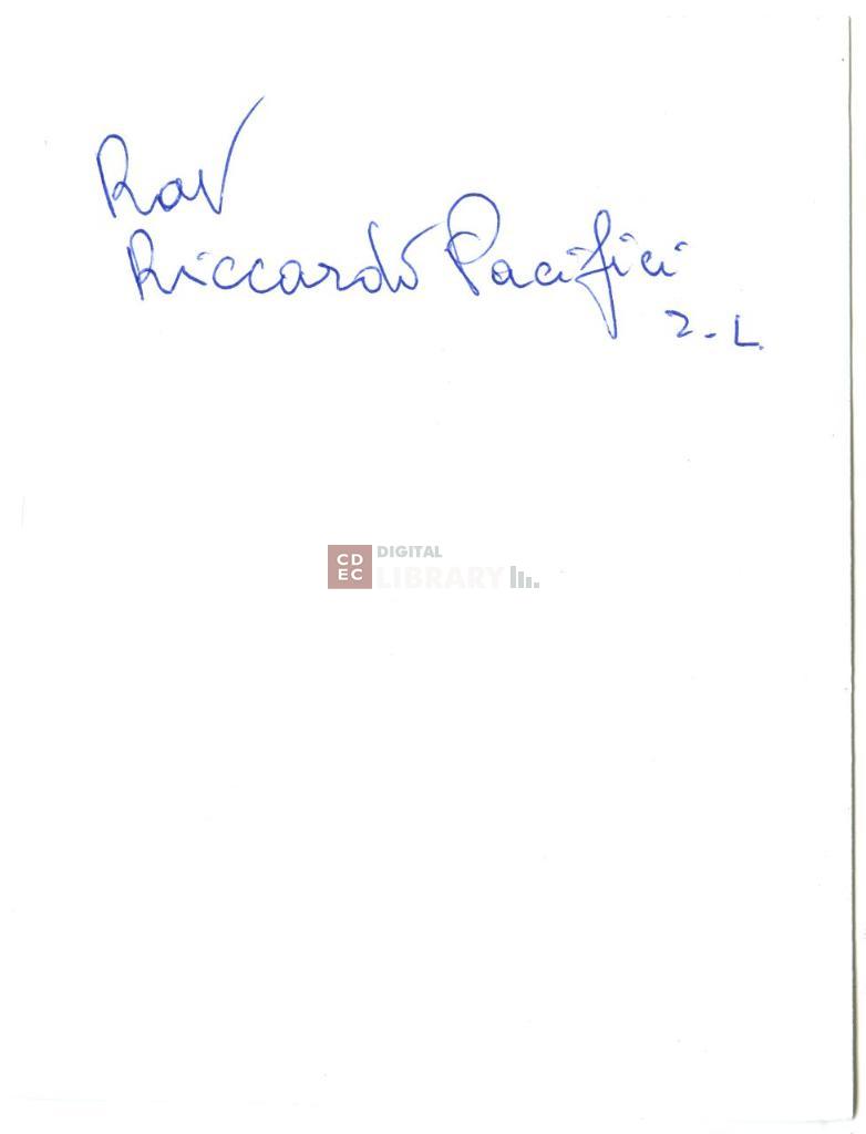 | iscrizioni | sul verso del supporto l'indicazione manoscritta "Rav Riccardo Pacifici z.l." |