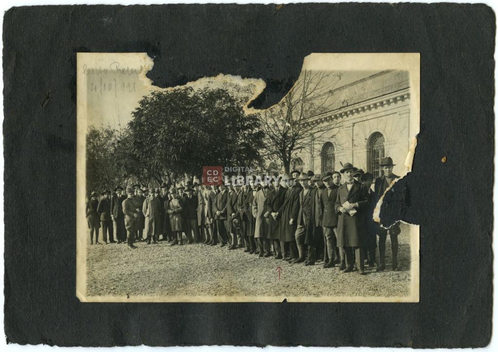 | iscrizioni | nell'immagine in alto a sinistra l'iscrizione manoscritta a grafite "Corso Prem[...]/ 4/12/921" - sul verso del supporto l'appunto manoscritto "Aldo Piattelli con i colleghi dell'Aeronautica/ 1921" |