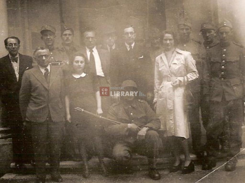 osservazioni | Nella fotografia si riconoscono Bernardo Grosser (primo a sinistra) e Rav David Schaumann (al centro in piedi, dietro il soldato accovacciato) |