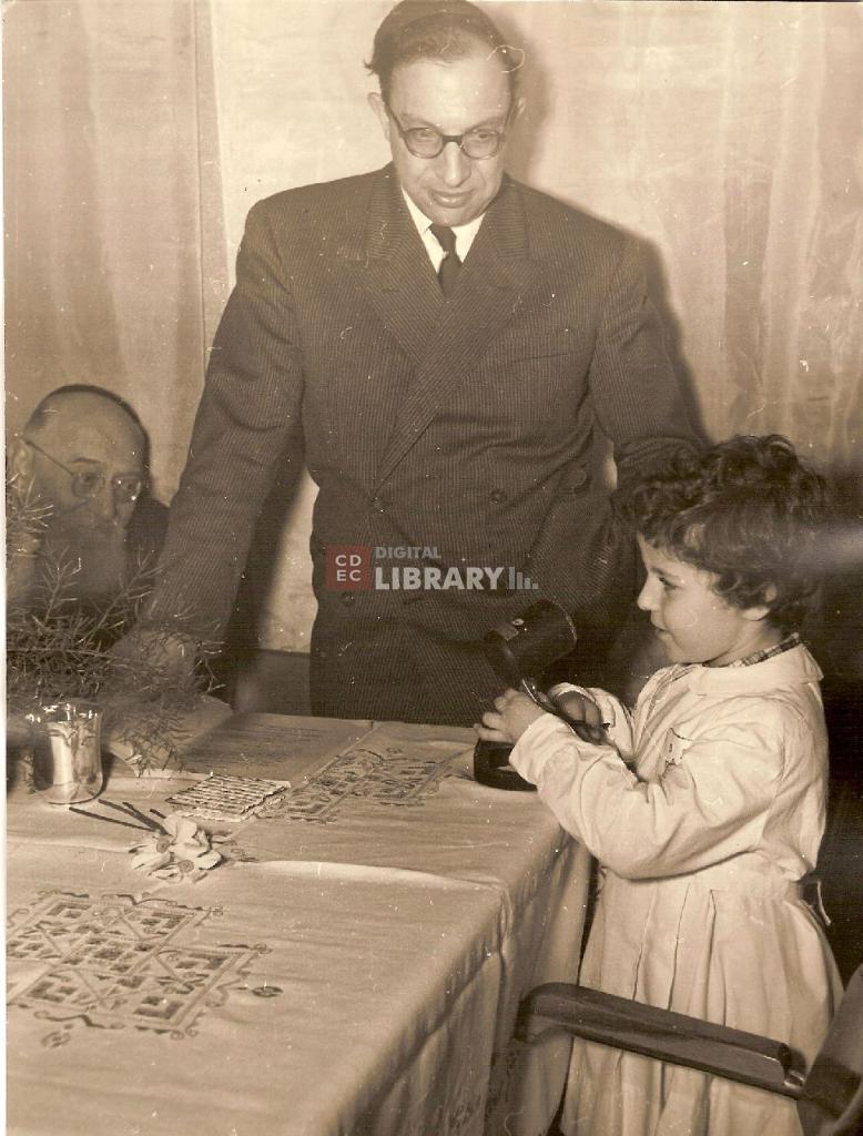 titolo attribuito | Ritratto di Rav David Schaumann e Rav Ermanno Friedententhal con un'allieva della scuola ebraica di Milano per la celebrazione di Pesach |