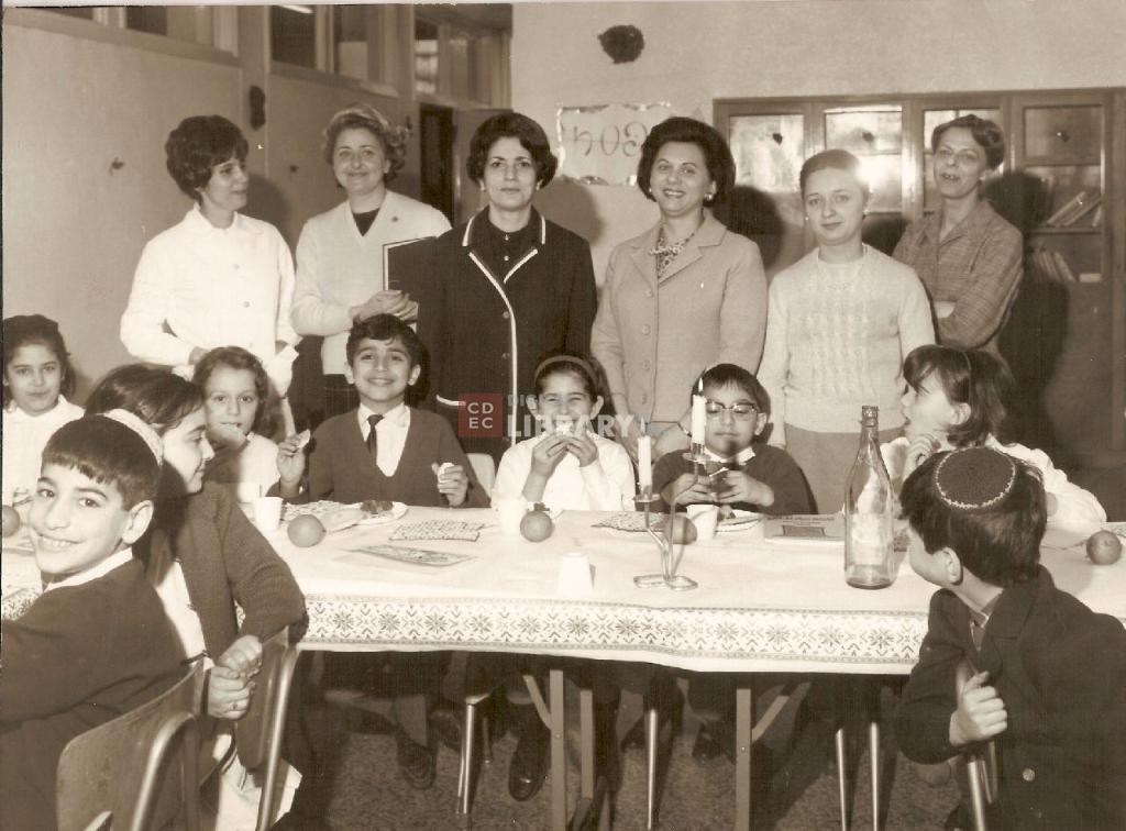 titolo attribuito | Ritratto degli allievi delle classi elementari con le morot durante un Seder nella scuola ebraica di Milano |