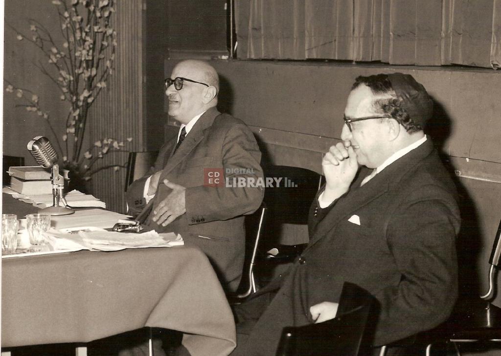 titolo attribuito | Ritratto di Yoseph Colombo con Rav David Schaumann durante l'incontro nell'Aula Magna della Scuola ebraica di Milano |
