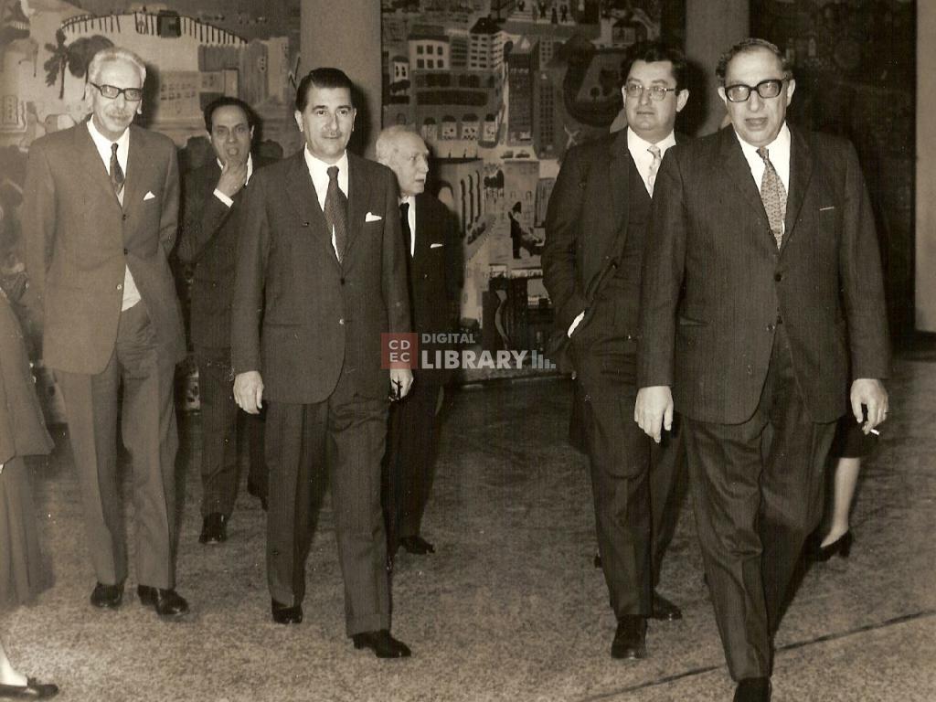 titolo attribuito | Ritratto del preside Schaumann con il Sindaco Aniasi e il Provveditore agli studi Leo in visita alla scuola ebraica di Milano |
