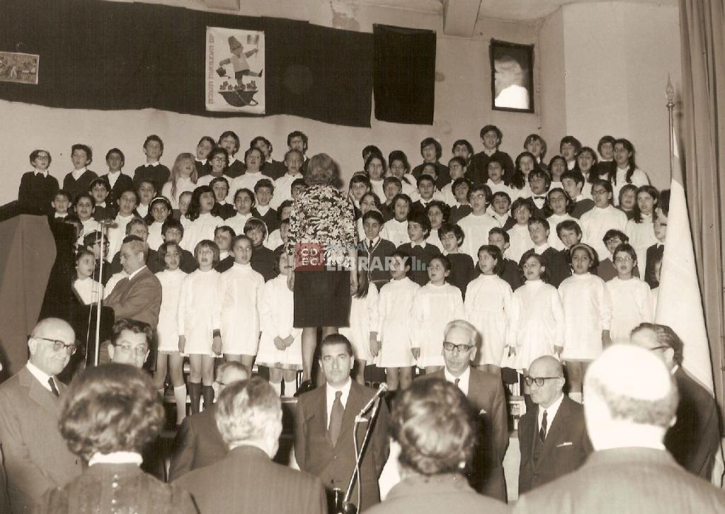 notizie storico-critiche | Visita ufficiale di una Delegazione del Comune di Milano e del Provveditorato agli Studi di Milano, con a capo rispettivamente il Sindaco Aldo Aniasi e il Provveditore Alberto Leo, alla Scuola ebraica di Milano. Ad accompagnare gli ospiti nella loro visita, il Preside della Scuole ebraiche di Milano Rav David Abraham Schaumann, insieme al prof. Yoseph Colombo e all'Assessore alla scuola della Comunità ebraica di Milano Emilio Pinto. Durante l'evento si tenne un'esibizione del coro degli allievi della scuola, diretto dalla maestra Jole Molco e accompagnato al pianoforte da Raffaele Nahon (responsabile della segreteria della scuola) |