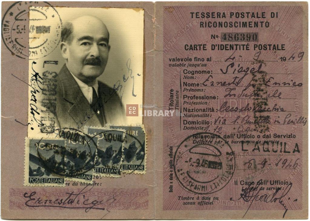 titolo attribuito | Tessera postale di riconoscimento di Ernest Siegel |