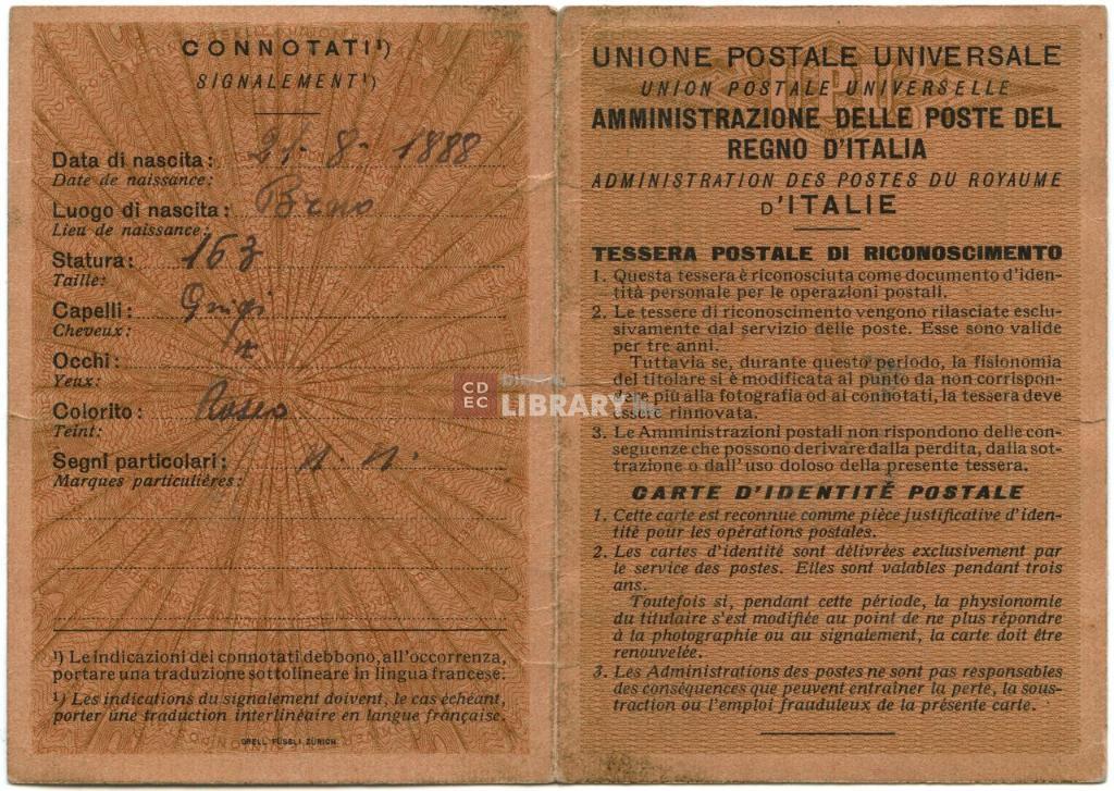 indicazioni sull'oggetto | fototessera incollata su un documento |