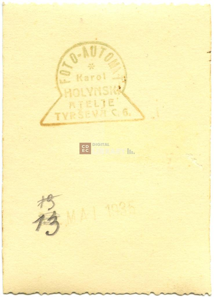 timbri, marchi | sul verso del supporto il timbro a inchiostro con il marchio commerciale del fotografo e la data "13 MAG. 1935" |