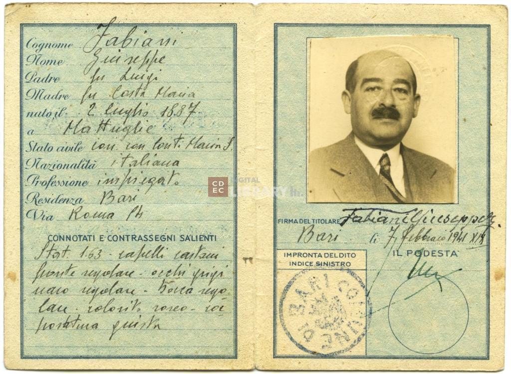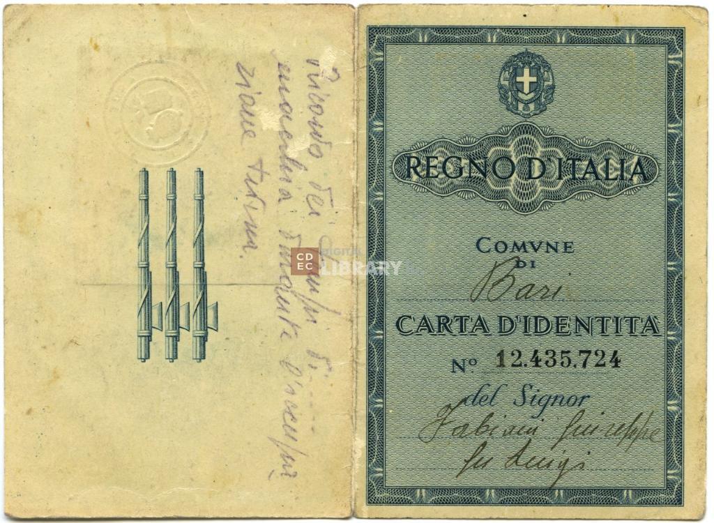 titolo attribuito | Carta d'identità con false generalità di Ernest Siegel (alias Giuseppe Fabiani) |