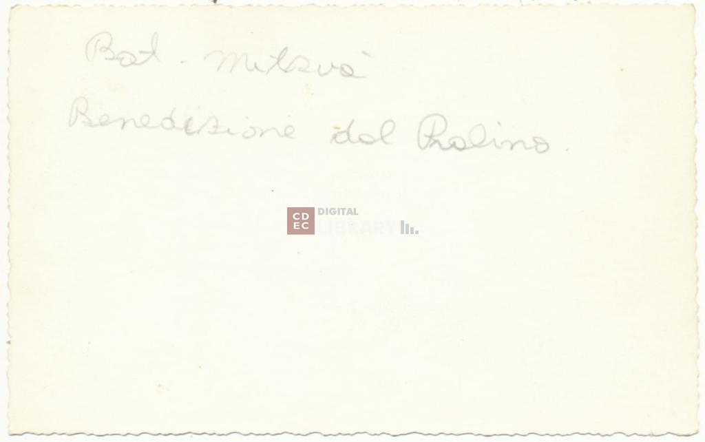 iscrizioni | sul verso del supporto l'indicazione manoscritta a matita "Bat-Mitzvà/ Benedizione dal Rabino" |
