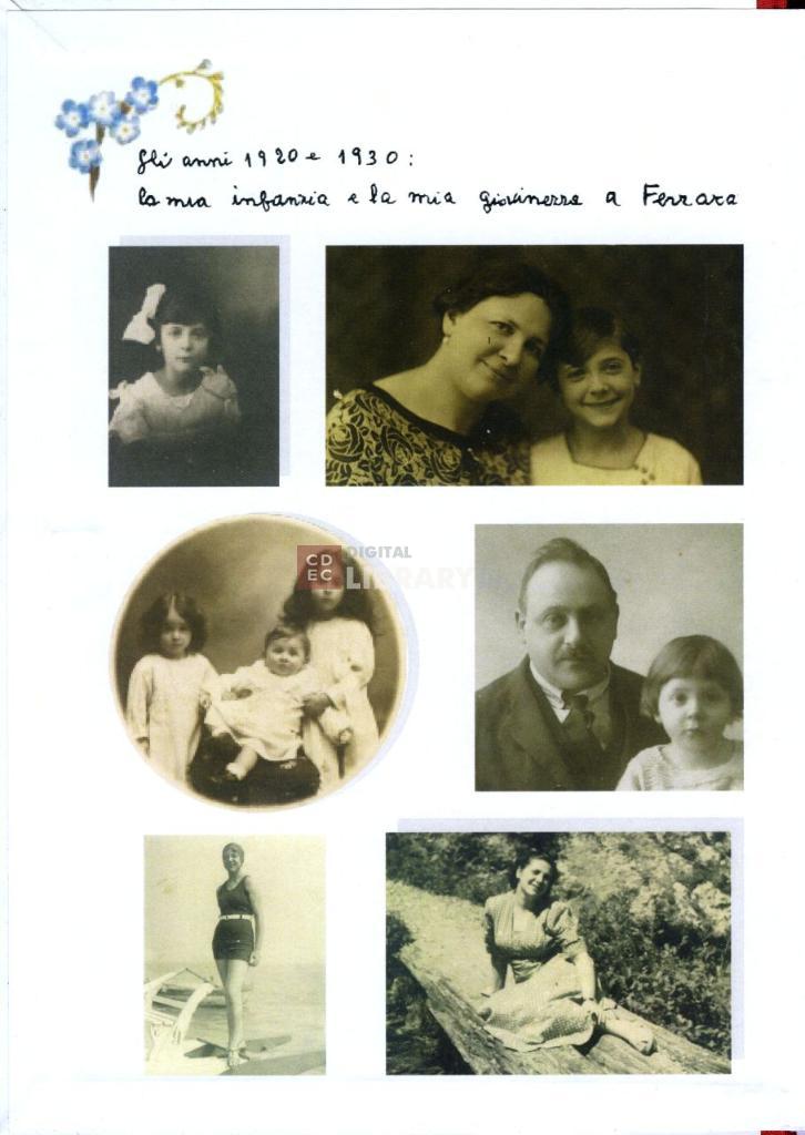 notizie storico-critiche | L'album fotografico fu realizzato dai figli di Matilde Bassani in Finzi a Milano nel 2008, in occasione del 90° compleanno della madre e sull'ultima pagina reca la dedica "I ricordi sono un Paradiso da cui non si può essere scacciati". Oltre a Matilde Bassani, vi sono ritratti, tra gli altri, i genitori Dante Bassani e Lavinia Limentani e i fratelli Eugenia e Bruno Bassani (nella prima pagina), il marito Ulisse Finzi (nella seconda pagina) |