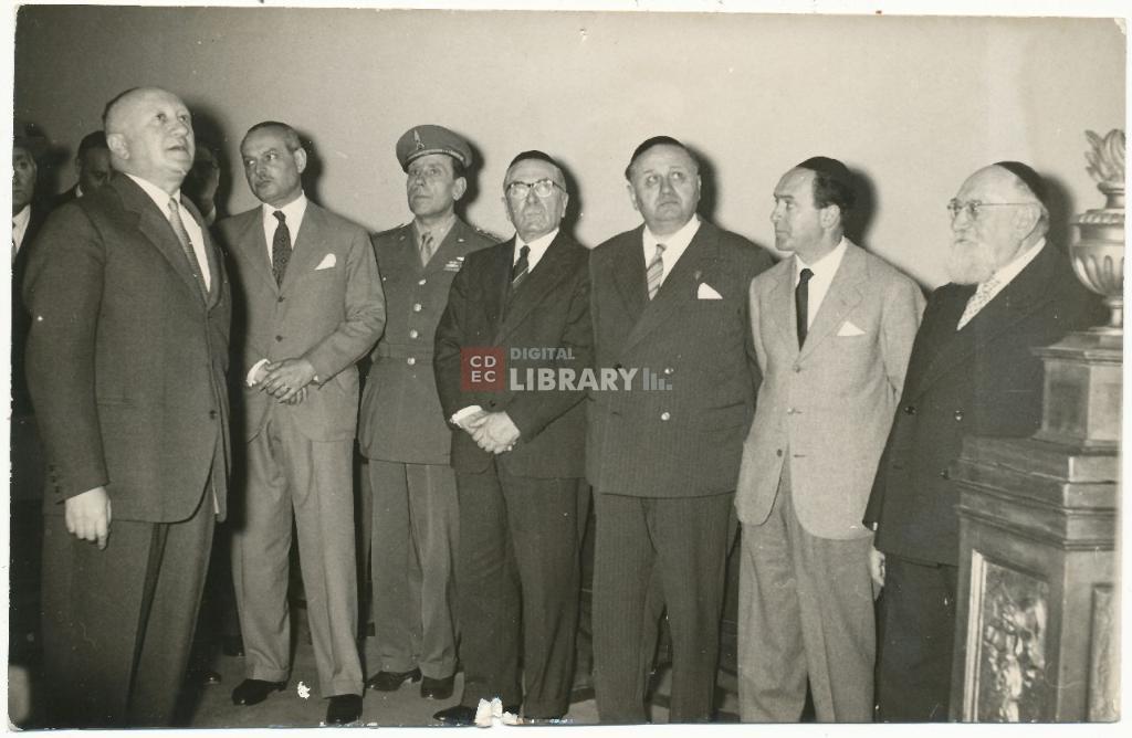 | osservazioni | Nella fotografia si riconoscono da sinistra a destra Giuseppe Ottolenghi, Guido Jarach, il Colonnello Di Bartolo, Virgilio Ferrari, Alberto Liuti, Adrio Casati, Rav Ermanno Friedenthal |