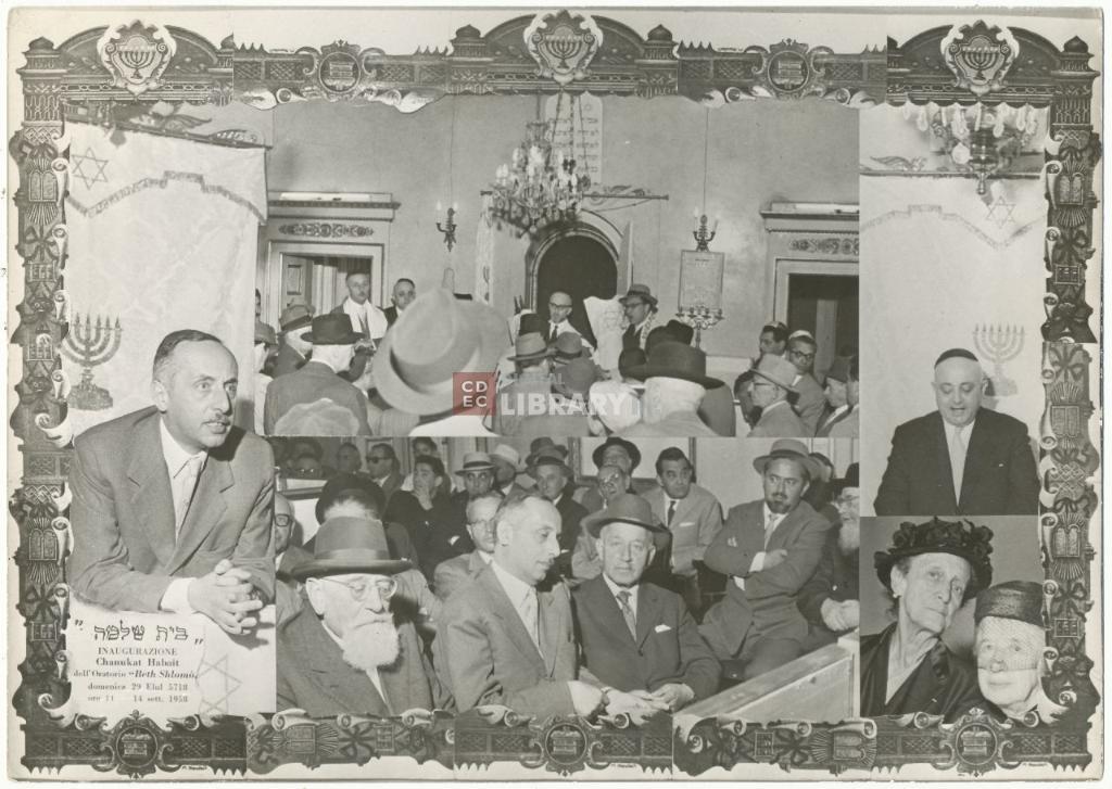iscrizioni | nell'immagine in basso a sinistra la didascalia fotografica con la scritta: "Inaugurazione Chanukat Habait dell'Oratorio "Beth Shlomò", domenica 29 Elul 5718 ore 11/ 14 sett. 1958" |