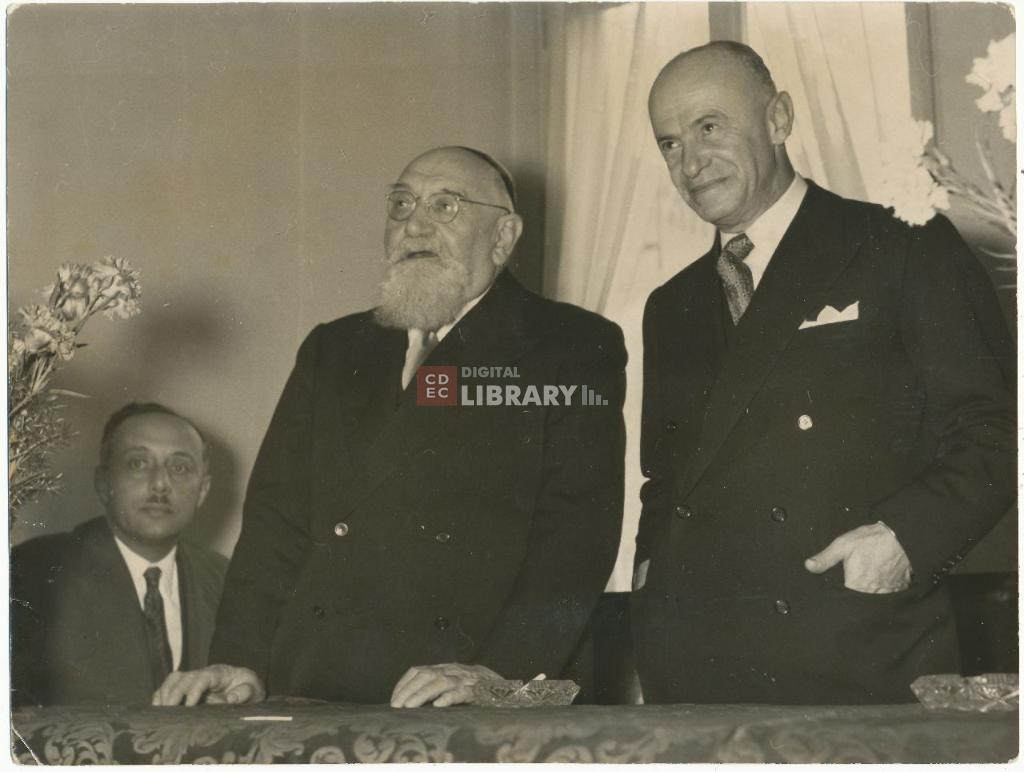 osservazioni | Nella fotografia si riconoscono seduto a sinistra Astorre Mayer, in piedi al centro Rav Ermanno Friedenthal e a destra Elihau Sasson |